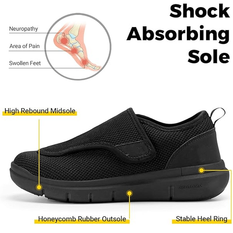 Unlike standard footwear, these walking shoes feature a stretchable and breathable mesh that adapts to your foot shape, offering irritation-free wear. The extra-wide toe box ensures proper circulation, making them ideal for diabetic, arthritic and swollen feet.